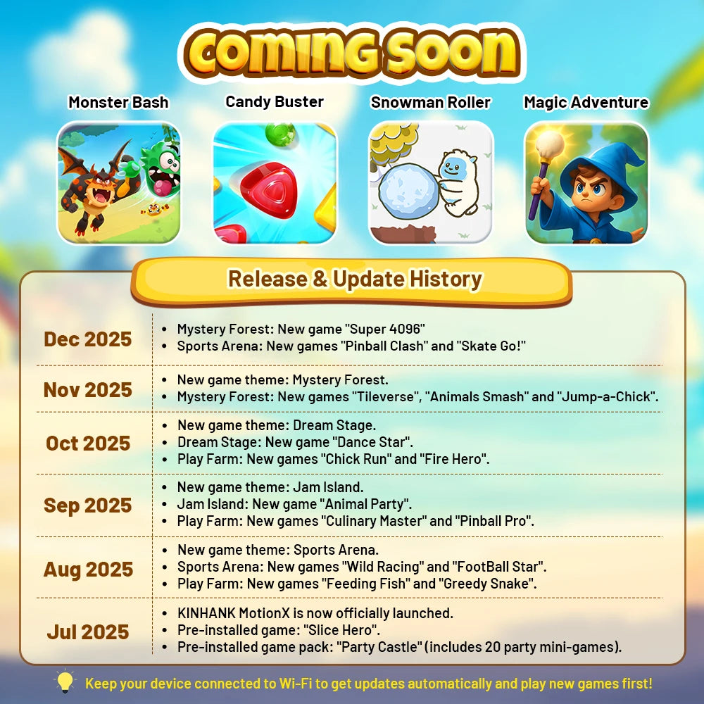 Turn your living room into an active playground with KINHANK MotionX — the AI motion-sensing game console that lets you play using your body only. No controllers. No subscriptions. Just instant fun for kids and adults alike.
